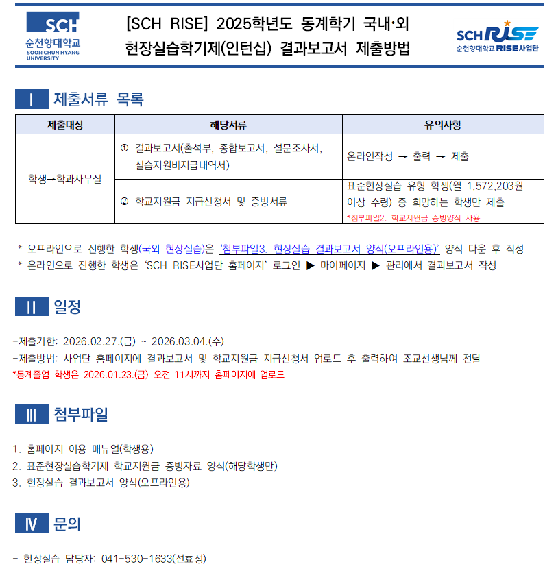2025학년도 동계학기 현장실습 결과보고서 제출 안내