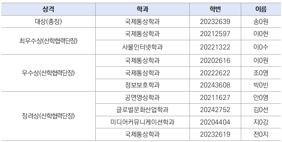 2025학년도 해외 교류 프로그램 참가 수기 공모전(2차) 수상결과 안내 드립니다.